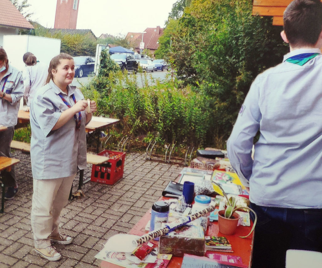 Und so gab es natürlich auch am Pfadfinderhaus wieder unser reichhaltiges Flohmarktsortiment – und zudem Kaffee. Natürlich pandemiekonform mit Maske und Abstand.
